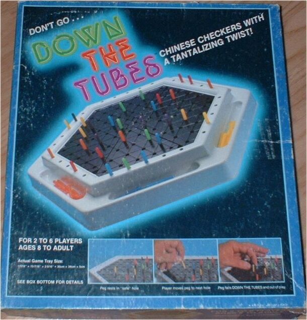 Down the Tubes is basically Chinese Checkers with a twist. The six sections that make up the board can be rearranged in a great number of ways to make play unpredictable. Simply put, some of the spaces you move your pegs to are deeper than the others, so your peg falls out of the game. You may then use this space as your piece stands on the last piece. You...