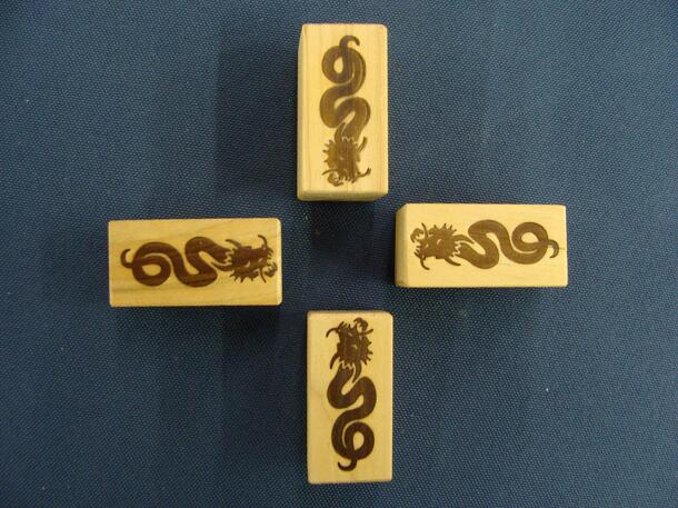 Dragons is a tile placement game in which two players strive to complete sinuous loops of their colour. Two players, Green and Red, share a common pool of 50 hexagonal dragon tiles. Each tile shows shoulders on the front and tails on the back in both players' colours. The opening player places a tile of their choice in the centre of the playing area....