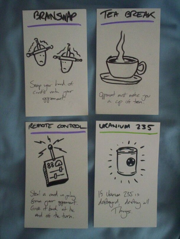 Dvorak is a "Nomic" card game where all of the cards start out blank; players choose a theme, sketch enough cards to get started, shuffle and deal, then add further cards to the game as the game progresses (voting on whether or not to add the new cards). It can be played as a throwaway party game of in-jokes and silly pictures, a cut-throat...
