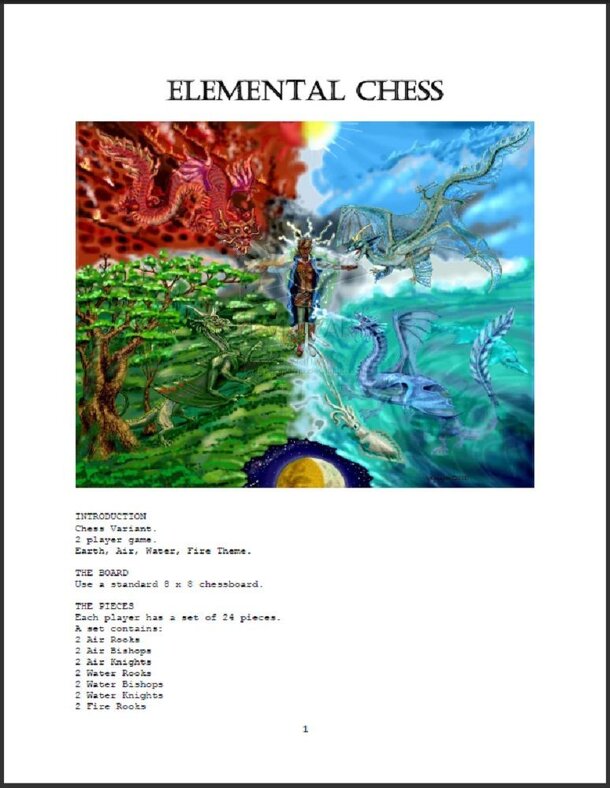 Do you like to play chess and enjoy fantasy card games like Magic the Gathering? Then you will probably like Elemental Chess. It is based on classic chess rules but includes a twist of fantasy. Instead of a full complement of chess pieces, each player begins the game with five pawns, two rooks, two knights, and an elementalist. The elementalist moves like...