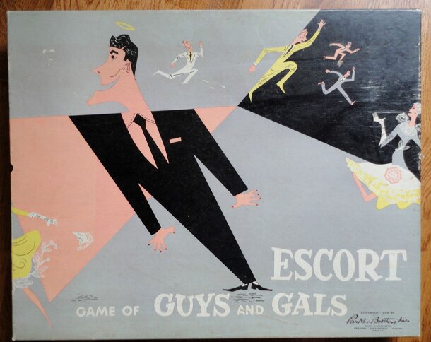 Object is for the player to move all three of his 'Gals" from their starting places on the board and into their "homes" on the opposite side of the board. They're escorted home by the nine 'Guys' of each respective player. Opposing 'Guys' can be captured by jumping. 'Guys' & 'Gals' can move in any direction, backward, forward, left, right or on diagonal....