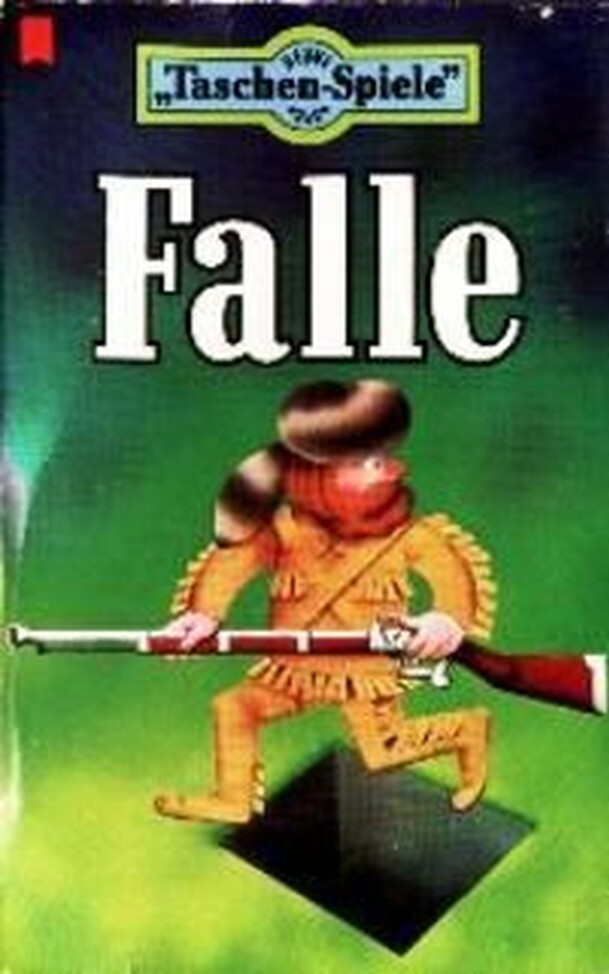 The Heyne travel game "Falle" (=trap) is played on a board of 16x17 size with home regions of 8x4 spaces for the 2 players. Each player has 8 playing pieces and 6 traps of different sizes. The traps are secretly deployed in the home regions by writing their position on a piece of paper. Object of the game is to occupy one of the 2 opposing center spaces...