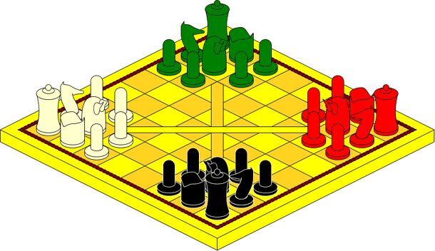 An interesting four-player version of chess from medieval Spain. Each player represents one of the seasons, and starts the game with a king, a rook, a knight, a bishop and four pawns in one corner of the board. The pawns are split, and move away from the corner in one of two directions. Each player is supposed to attack the player to his right, and on...