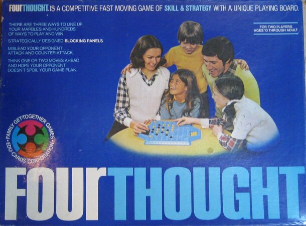 From the back of the box: FOURSIGHT - a classic game for two, is the only board game that actually allows you to play half of your opponent's pieces as well as your own. To win, you must learn to think like your opponent and have the foresight to change your strategy as conditions of play change. Your object: get 4 in a row to win immediately or three in a...