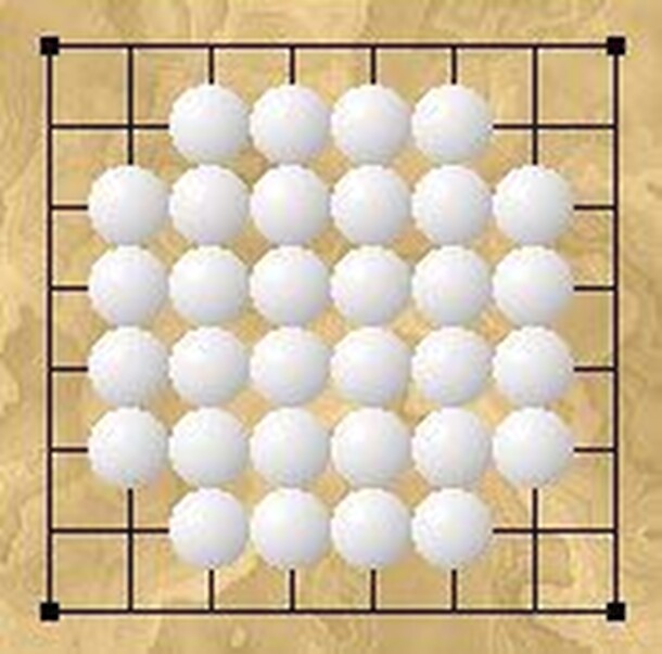 Abstract strategy board game with only one type of piece. Number of players: usually 2, one controlling the black pawns, the other controlling the white. (The instruction booklet also contains rules for a 4 player version.) The game board is a grid of 144 squares (12 rows x 12 columns). Each square is marked at one of the corners to help identify related...