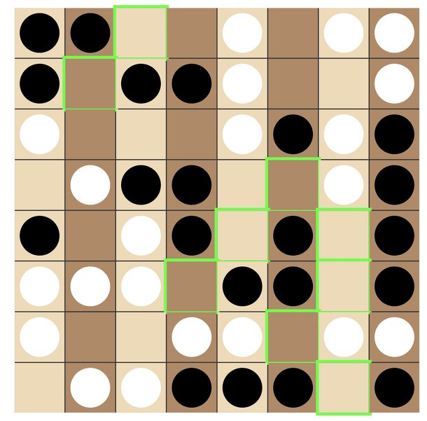 An entry in the 2001 About.com 8x8 Game Design Competition. Player 1 owns the black checkers, while player 2 owns the red checkers. Opponents alternate turns, as in most games. A 'king' is defined as in the game of Checkers: it is a stack of two checkers, of the same color. Kings cannot move but can be captured. On his turn, a player chooses one of his own...