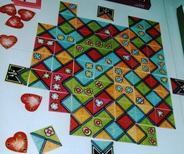 ‘Luck, Wit and Gemstones’ is a tile placement game. The tiles are divided into simple geometric shapes in four different colors, red, green, blue and yellow. Many tiles will also show one or two gemstones. Players place tiles and build complete chamber-like structures in their respective colors and try at the same time to maximize the number of gems that...