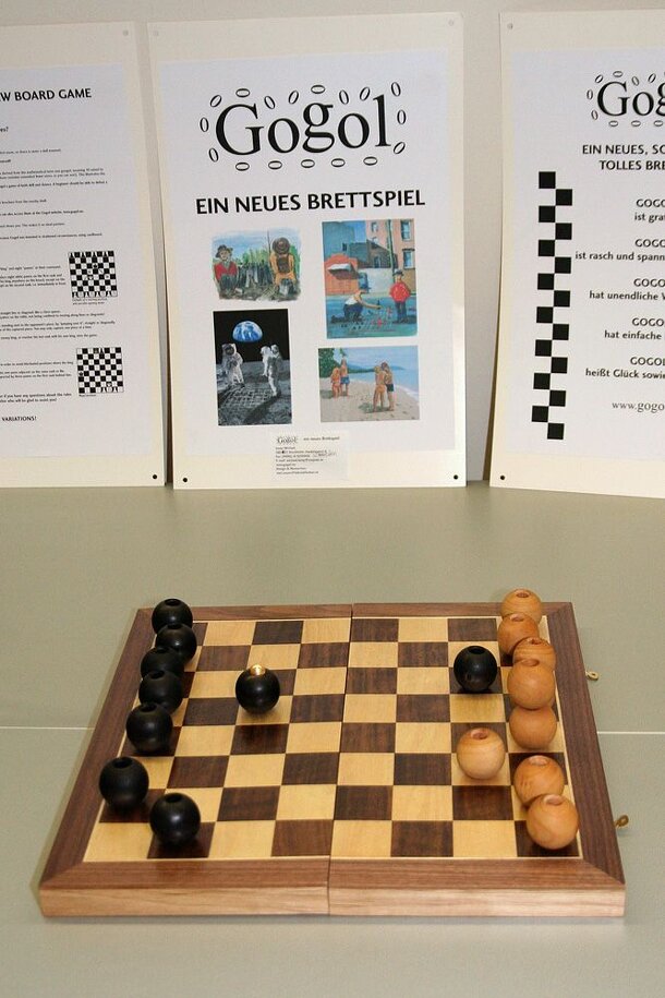 Gogol was conceived in a prison, where no paper or pencils were allowed. Designed to be playable under the most primitive circumstance, each move in Gogol sets off firecrackers of endless possibility! There are two players (White and Black), each having one king and eight pawns at their command. On a common chessboard, place eight white pawns on the first...