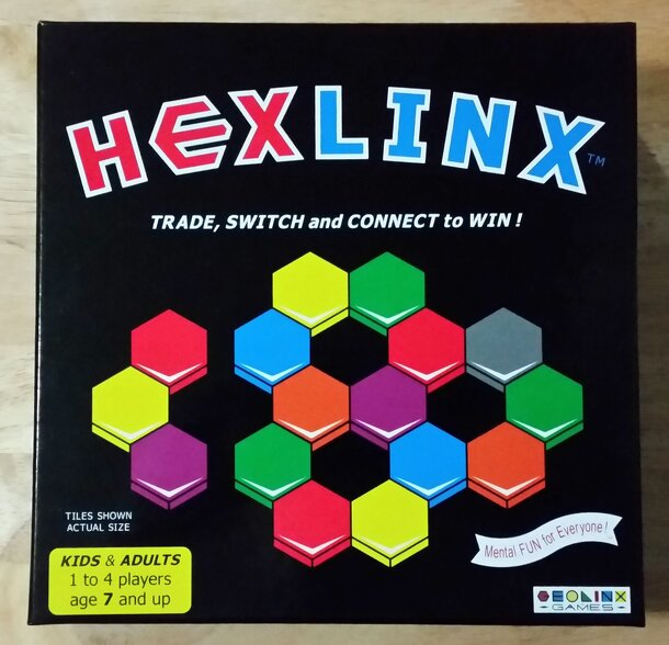 From the publisher: Hexlinx is an intriguing game of geometric strategy in which players start each turn with 6 tiles, then score points by trading, switching, and connecting them to build a honeycomb grid of interlocked rings. Each ring must include 6 different color tiles. When all the tiles have been drawn and no player can form any more rings, the game...