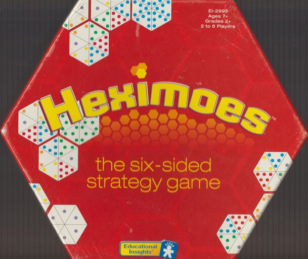 "the six-sided strategy game" Heximoes includes 132 six-sided cardboard tiles. Each side has a number of dots, between one and six. As in dominoes, you make matches, but must make sure all sides line up: sixes against sixes, fives against fives, etc. In the main game, each player takes six tiles from the box. If you can not make a play, you must draw an...