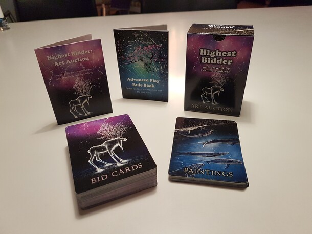 Highest Bidder is a card game for 2-5 players. Bidding is a central mechanism as players place secret bids from their hands onto point-scoring cards. Bids are placed simultaneously at the count of three and you never know which cards, how many and in which order your opponents will play. Once bids are placed face down in front of each player, they're...