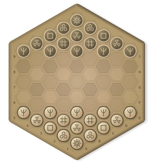 This is a chess-related abstract strategy game with an insect theme, played on a hex board of 61 cells. Pieces are the Queen, Highborn, Drone, Nurse, Worker, and Soldier. Each type of piece has a unique ability and movement. Soldiers are the only pieces that can capture, but they may only move over friendly pieces to do so. Nurses can "birth" new pieces...