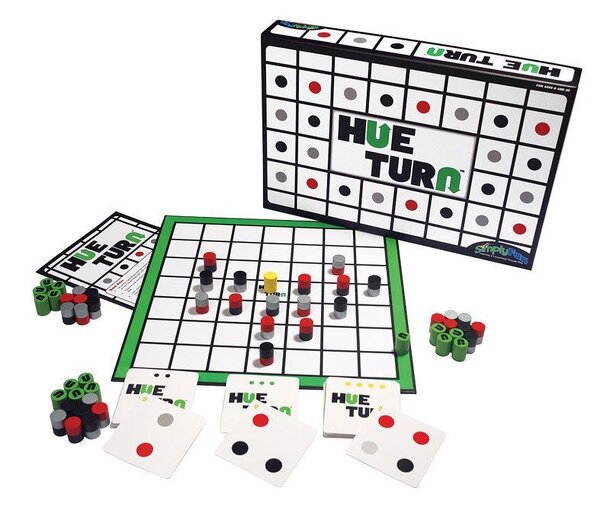 Can you see your pattern on the board? If not, add a peg or make a Hue Turn to get the pattern you need to score your card! Patterns show two, three or four peg positions with complex patterns worth more points than simple ones. See how good your pattern recognition is. The cards each show a pattern of 2, 3, or 4 colored dots, and are divided into a 2-dot...