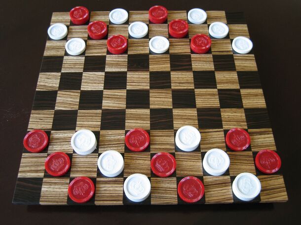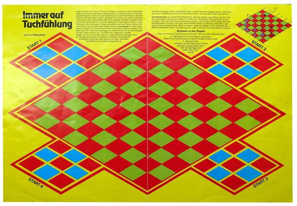 Each player has 10 pawns, he has to get from his side on the game board to the opposite side. Two pawns of the same color may occupy the same space. Movement is one space diagonally forward on the red spaces. Only single pawns of another color may be caught by jumping (diagonally forward)over the pawn on a free space behind it. The pawns have to move in...