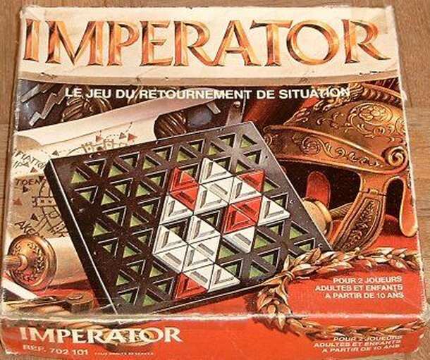 The objective in Imperator is to surround an opponent's pieces, thus converting them to your side. Each player is supplied with 10 triangular pieces, white on one side, red on the other. They each take turns placing the pieces, with their colour exposed, on the game board. The objective is to surround one or more of your opponents pieces with your own....