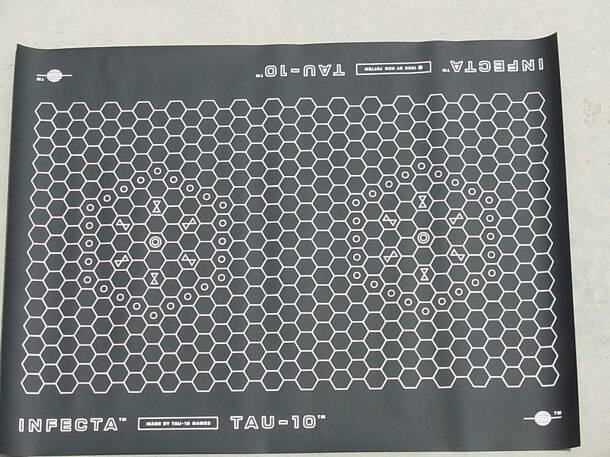 From the rules: Infecta is the game of cell survival. A life-and-death struggle between single-celled organisms involves two players in a rapid action contest of dice and strategy. Each opponent attempts to inflict the foreign cell by exposing it to a carrier virus while defensively contracting its own cell wall and shifting its nucleus out of danger. As...