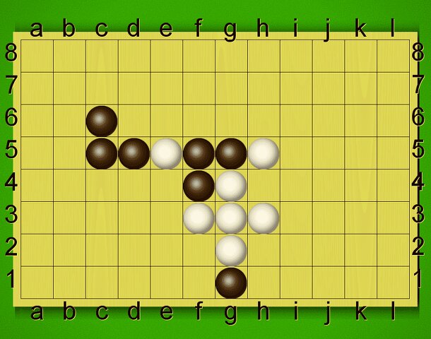 "The devious strategy game where each move generates a chain reaction." The board is 9x9 with the corners clipped; the middle row is made out of deeper "pockets". Each player controls two cue balls; in addition, there are 10 neutral balls, moved by the cue balls. The object is to maneuver five neutral balls into the pockets (once there, they are removed...