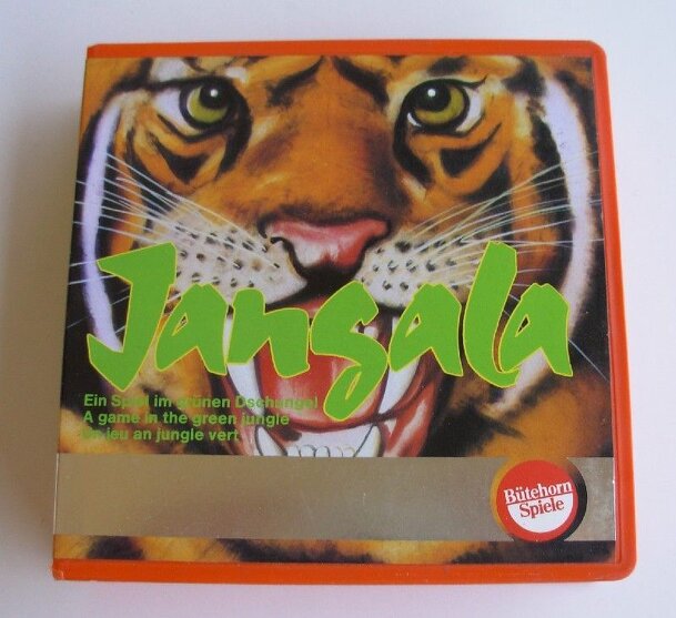 Jangala is played on a very small board (5x5) with very few playing pieces (3 per player). You start in one edge with your 3 pieces of different size and must try to reach the opposing edge first to become winner. Sounds very easy, but that's not true! The problem is that you are only allowed to move on empty fields or on fields with pieces not smaller...