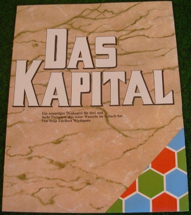 The game "Das Kapital" was included in Spielbox 4/82 as part of the "Spiel zum Herausnehmen/Game to Remove" series. It is played on a triangular board with 81 hex spaces. It is a variation of a chess game for 3 players. And as in chess, the object of the game is the capture of the opposing king(s). Each player has 9 playing pieces: - 1 Kapital (similar to...