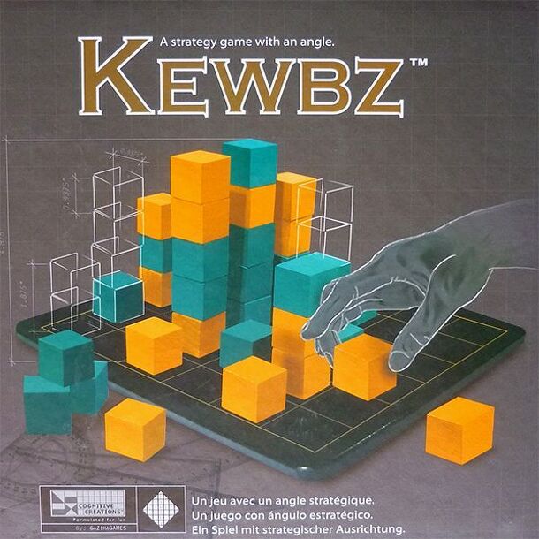From the publisher's website: In the clever, creative, competitive, and captivating game of Kewbz™, opposing players compete for ownership of 'tower units' by positioning the final cube on top. Each time a corner is made, a cube is stacked at the intersection. When multiple corners are created, then multiple cubes are added into play. Clever strategy moves...