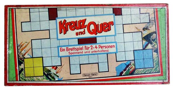 Kreuz und Quer is played on a 17x17 board. 2 Players try to move their 3 musketeers and 8 soldiers to the other side of the board, using two dice: First, the red dice indicates mandatory backward or sideways movement of one unit, followed by mandatory forward movement from the green dice. Soldiers move orthogonally, musketeers can move diagonally as well....