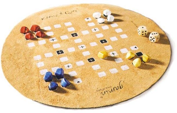 The players place their meeples on the starting spaces of their color (or colors). The goal of the game is to reach the starting spaces across the board. Friendly players move in opposite directions, while the opponents move sideways. Movement is one space straight ahead. Opponent meeples may be thrown out and then have to start anew. Friendly meeples may...