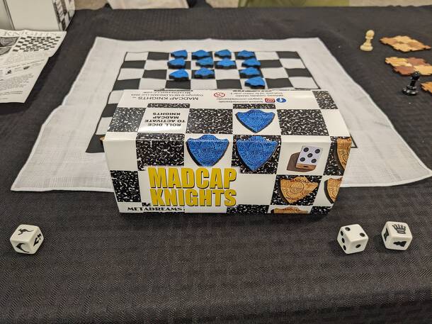 OBJECTIVE: Capture your opponent’s hidden king. Unlike the classic games of chess or checkers, where pieces can only make one kind of move depending on what type they are, the Madcap Knights can take any action needed. To activate your Madcap Knights, roll two dice: THE CHESS DIE THE NUMBERS DIE The Chess Die will determine what kind of move is possible on...