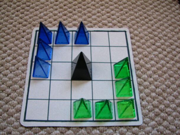 Martian Backgammon is designed using Icehouse Pieces, and is the Icehouse answer to roll-and move race games. Like its namesake, Martian Backgammon is an abstract strategy game with a significant luck component. Two players compete to be the first to get their pieces off of superimposed U-shaped tracks, while capturing enemy pieces and evading capture...