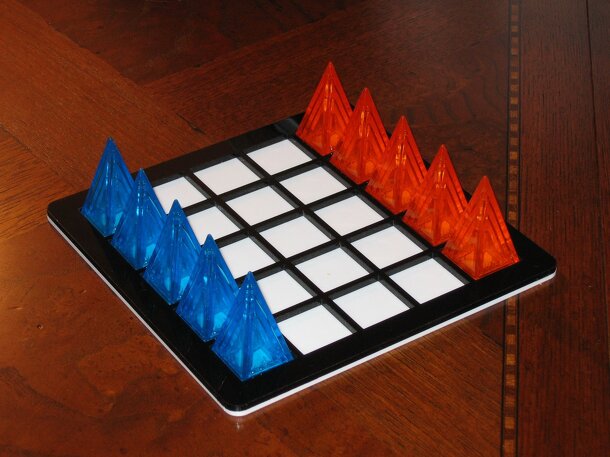 An Icehouse game based on Conway's Game of Life. It requires one stash of pyramids per player and one chess-board. Each turn, a player places a small onto an empty space, or grows one of their existing pieces (small to medium, or medium to large). Then dead pieces are removed simultaneously from the entire board. As in Conway's Game of Life, a piece's...
