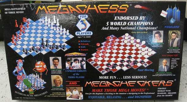 From the publisher's website: Megallo is a three-dimensional strategy game for two players. This is an alignment game, in which four playing boards form a winged-box with three levels. The objective of the game is to place game chips on the board in any one of six winning combinations. The unique design of the game requires players to use spatial reasoning...
