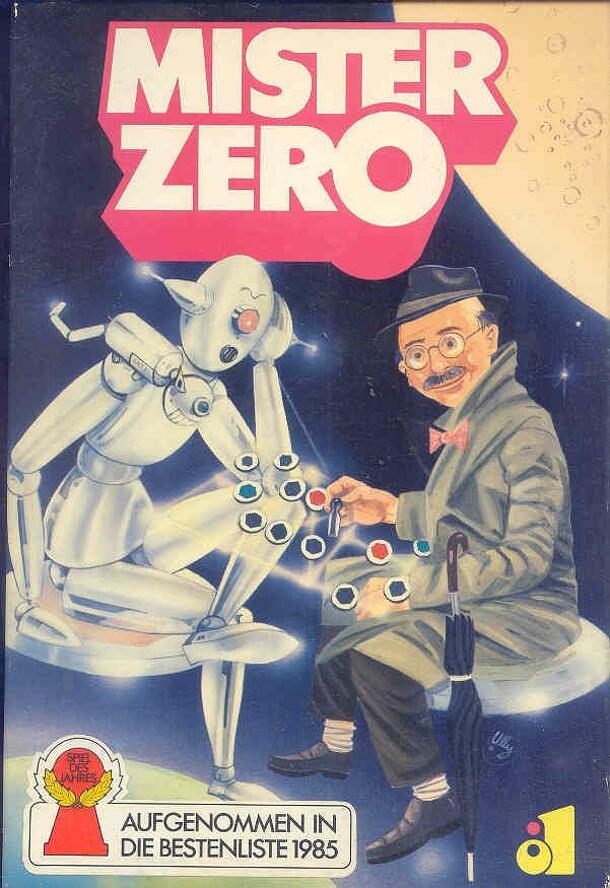 The board shows a network of roads, in the middle a character - Mr. Zero. Each player has his own goal space and ten chips numbered from 0 to 9 with which to influence the path that Mr. Zero takes. They take turns placing chips on the roads. When all of the chips have been placed, the decisionmaking part of the game for the players is over and that of Mr....