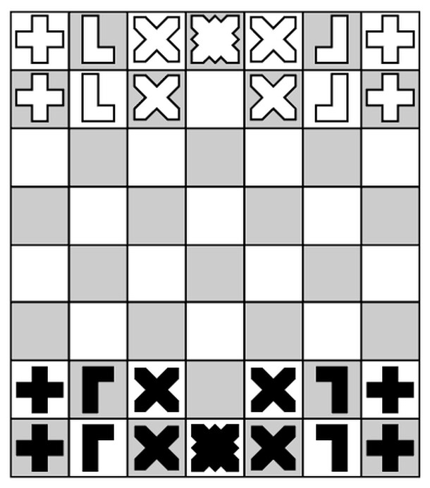 Mirrorwing is a game inspired by Chess but with some interesting twists. All pieces are, essentially, pawns ("villagers") at the start, but they can be stacked -- at which time they become a "dragonrider", with the movement based on the bottom piece ("dragon") and the attack/capture (which is done without moving to the capture location, unlike Chess) based...