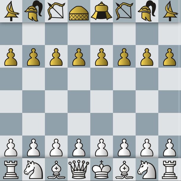 Orda is an asymmetric chess variant that pits the Mongol horde against the kingdom. The Mongol horde is based around knight movement, with pieces like the horse archer that move like a knight but capture like a bishop, or the Kheshig which moves and captures like a knight and king combined, while the kingdom has the same pieces and opening set up as the...