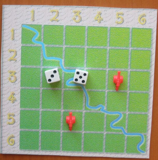 A relatively simple, tile-placing strategy game in which players choose an army to portray (Orc, Elf, Human, Dwarf). After two dice are rolled, players can place units of their army on a small 6X6 board according to the coordinates on the dice. Playing units in this manner costs "Shield Points" (which go into a kitty obtained by the player who deploys all...