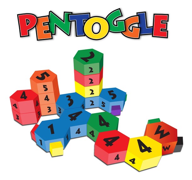 Pentoggle is an abstract tile matching game for 2-6 players ages 7 and up. Players draw tiles from a bag, match them to tiles with the same number/differnt color or same color/different number, and earn points according to the numeric value of the tiles in the series. Tiles are matched not only horizontally but also vertically. The player who earns the...