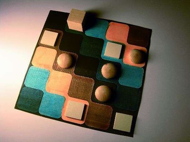Period 5 is a strategy game whose underlying mechanic is based on a juggling notation called siteswap. Pieces: All pieces are able to move orthogonally as far as they wish until they either come to the edge of the board or meet another piece. Each player controls 4 of their own pieces. There is also a cube which both players may control. Setup: The cube is...