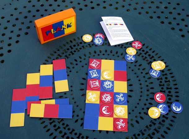 Plank is a public domain game that was included by Sid Sackson in A Gamut of Games. Players take turns laying "planks" and placing or moving markers on the resulting game board. Each plank has one red, one white and one blue field, which can only be occupied by markers of matching colors. The object of the game is to form a vertical or horizontal line of...