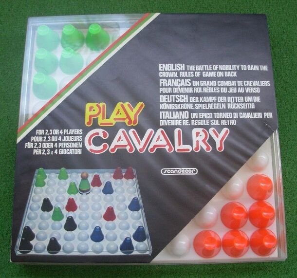 This game belongs to a series of 4 games by Scandecor, who come in a square plastic box (Play Cavalry, Play Balance, Play Ecology and Play Numeric). Play Ecology looks like a mixture of "Trap the Cap" and "Chess", but it is not as easy as that sounds. Each of the players has 6 playing pieces, which move like the Knights in chess. In the middle of the board...