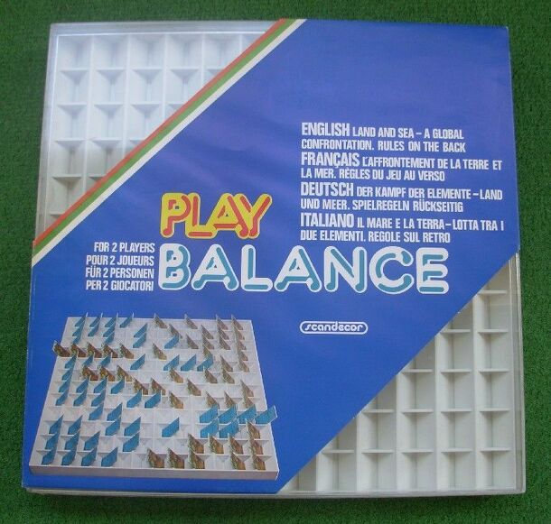 This game belongs to a series of 4 games by Scandecor, which come in a square plastic board (Play Cavalry, Play Balance, Play Ecology and Play Numeric). The board has 12x12 spaces and each of them is made as a 3d-hole, where you can place a tile looking to one player or to the other by tip over the tile. One player plays with the 48 water tiles and the...
