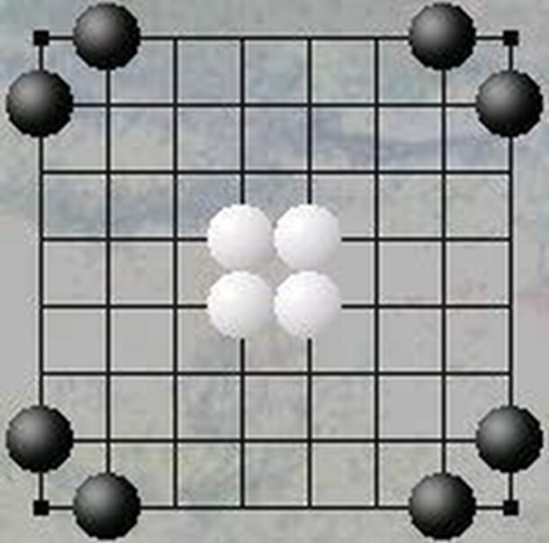 Pletore is a drawless territory game for two players: Black and White. It is played on the intersections (points) of an initially empty square grid (board). Pletore was inspired by Michał Zapała's Tumbleweed. DefinitionsTwo stones, or a stone and an empty point, see each other if they lie on the same row or column and there are no other stones between them...