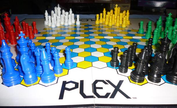 "The new challenge in Chess" Plex is a variation of Chess that can be played with 2-6 people. It's played on a hexagonal board (with hex-shaped spaces) with the pieces still moving in the same way as regular chess. In the 2 and 3 player variations, the pieces are set up similar to a normal chess board, in that each player's pieces are in 2 rows. In the 4-6...