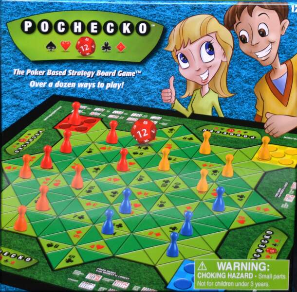 Pochecko is a strategy board game that combines aspects of Poker and Chess. It is a 2-4 player game for ages 12+. In Pochecko, the players move markers around a board in order to claim poker cards and build a poker hand off of 1 of 2 community cards. As a counter maneuver, players may instead move one of the community blockers in order to block opponents...