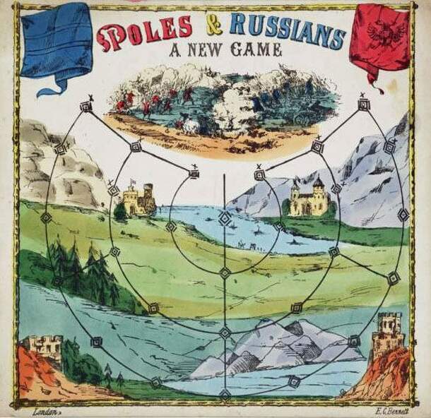 Abstract game for two players. One takes the Pole playing pieces, the other the Russians. The Poles are lighter in appearance, the Russians darker. Each player puts his men on the spaces marked with an X on his side of the board. The object is to capture all your opponent's pieces.The men move forwards (or sideways I suspect but the rules are not clear on...