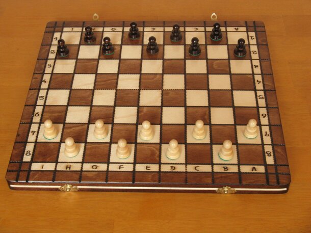 Prosterno is the classical logical game created by Marek Łukaszewicz in March 2010. This strategic game for two players is played on the board 8x9 squares. The pawn under attack must jump horizontally or vertically over an empty square to the next square of the same color behind it and when it is not possible it is taken off the board. The goal of the game...