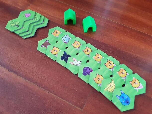 Secret Mission is the reimplementation of Hexdominimum for the Puppy Park set, by the same designer, released as a bonus game. Up to 4 players can play. It can be played with or without the expansion, although the dog houses and tree-poop tiles are not used. To set up, shuffle the tiles face-down on the table. Each player then draws a tile without showing...