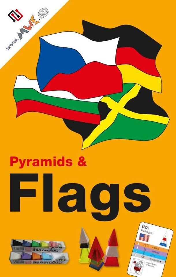 Pyramids and Flags is a game for 2 to 4 players with one Rainbow and one Xeno set of Treehouse pyramids to play it. Out of these pyramids, players put together flags of specific countries from all over the world. Apart from the pyramids and the pack of 36 goal cards, you do not need anything else. Move a pyramid to create a flag! Complete rules are...
