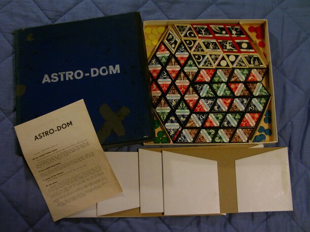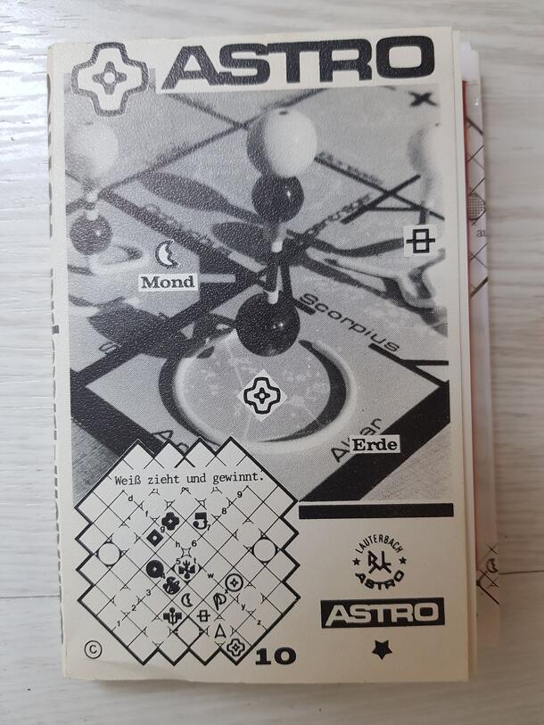 A game created by a mad scientist (according to the cover) who combined "the best parts of Chess, Checkers, and Chinese Checkers." An abstract strategy game with some light outer space chrome. The hex grid mapboard is double sided -- one side is for the two player game, the other side is for three players. The object of the game is to occupy hexes in an...