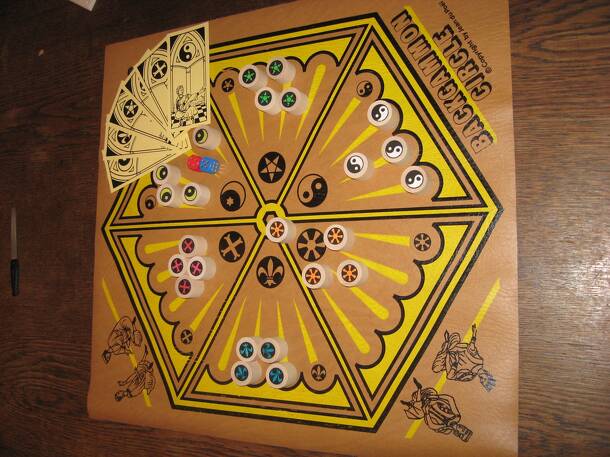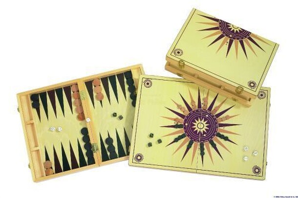 This Backgammon variant is based on an illustration of the games book of Alfonso el sabio X., dated around 1200. It is for 2 to 6 aged 8 and up. Rules are very similar to Backgammon. 2 on a field are a block. You begin with your 4 pawns on your start field. You move with two dice clockwise. If you roll a double you can roll again after moving. In...