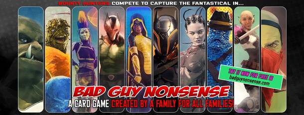 Bad Guy Nonsense is a unique strategic family card game where you compete to capture fantastical BAD GUYS. It features wild pop culture-rich artwork on large OVERSIZED glossy linen cards making it unlike anything else that has come before. You’ll need all your wits and gaming skills to employ BOUNTY HUNTERS, BANDITS, BURGLARS, HEROES, MONSTERS, and a WITCH...