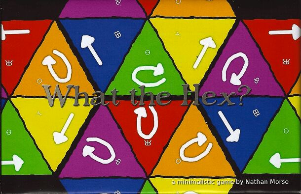What the Hex? comprises merely four two-sided hexagonal tiles. Players take turns moving a hex to another location, rotating and flipping it as they choose for the destination. Once there, the hex affects all the other hexes it touches. The player gets a point for each "diamond" of matched color of hex sides on any of the tiles. Start with the two-sided...
